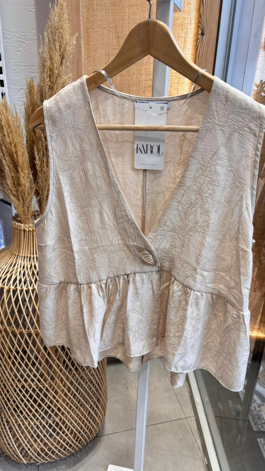 Sıfır Kol Bluz Bej