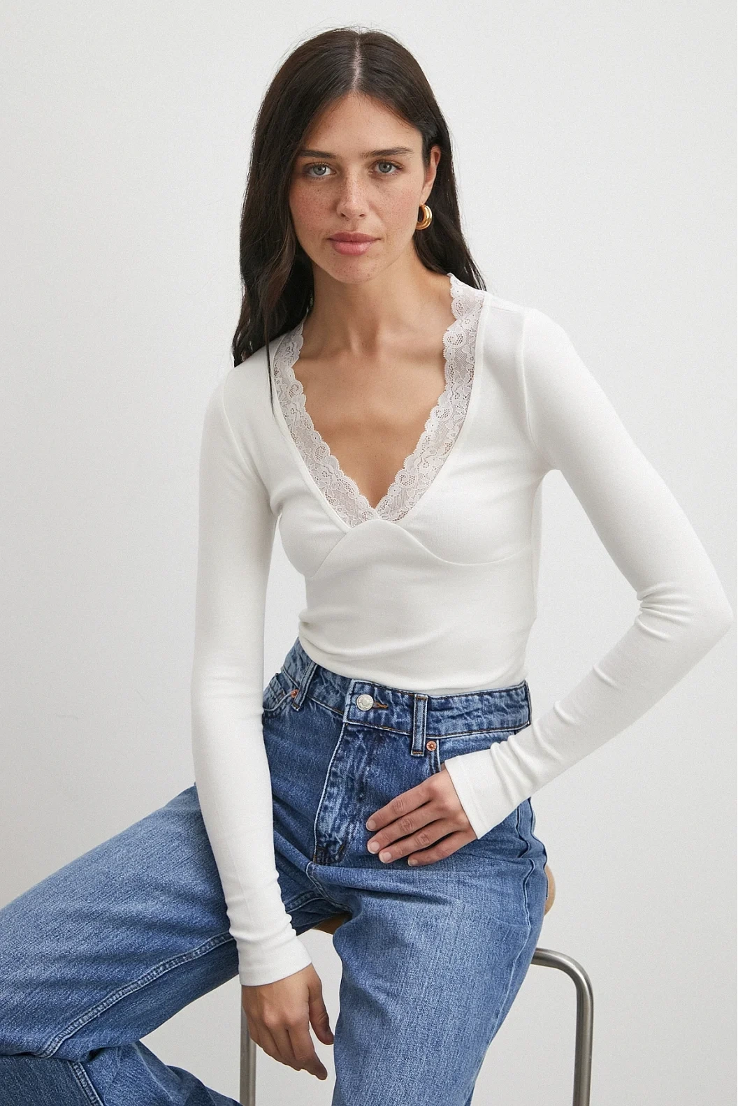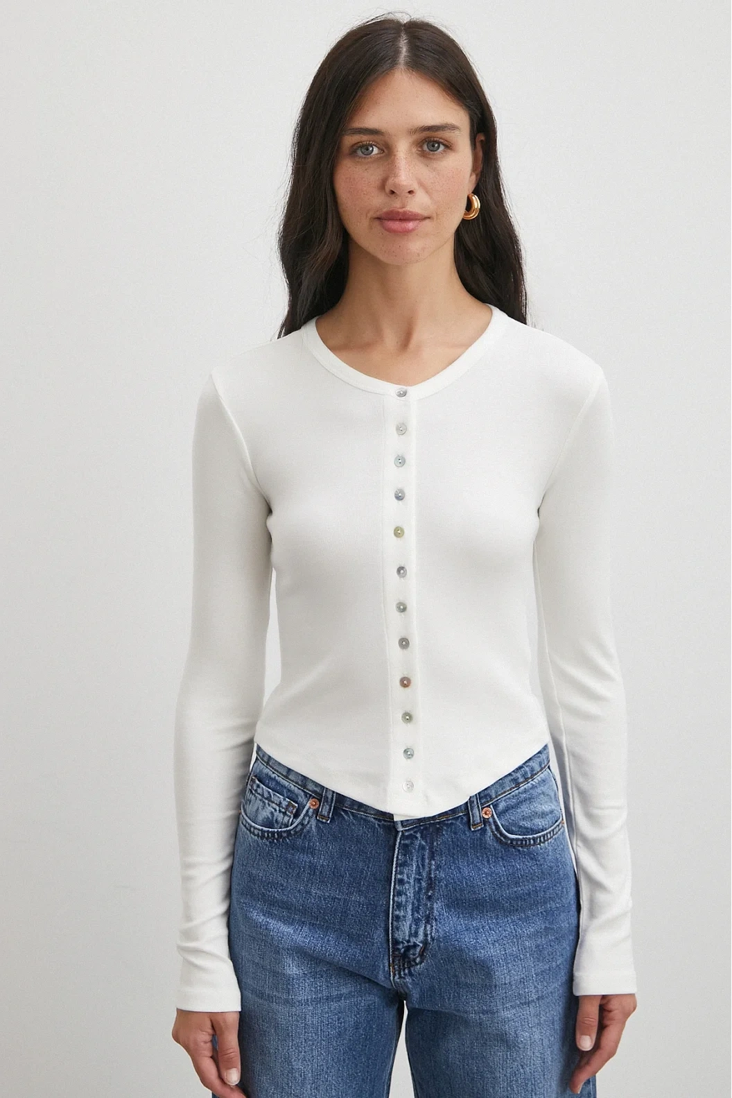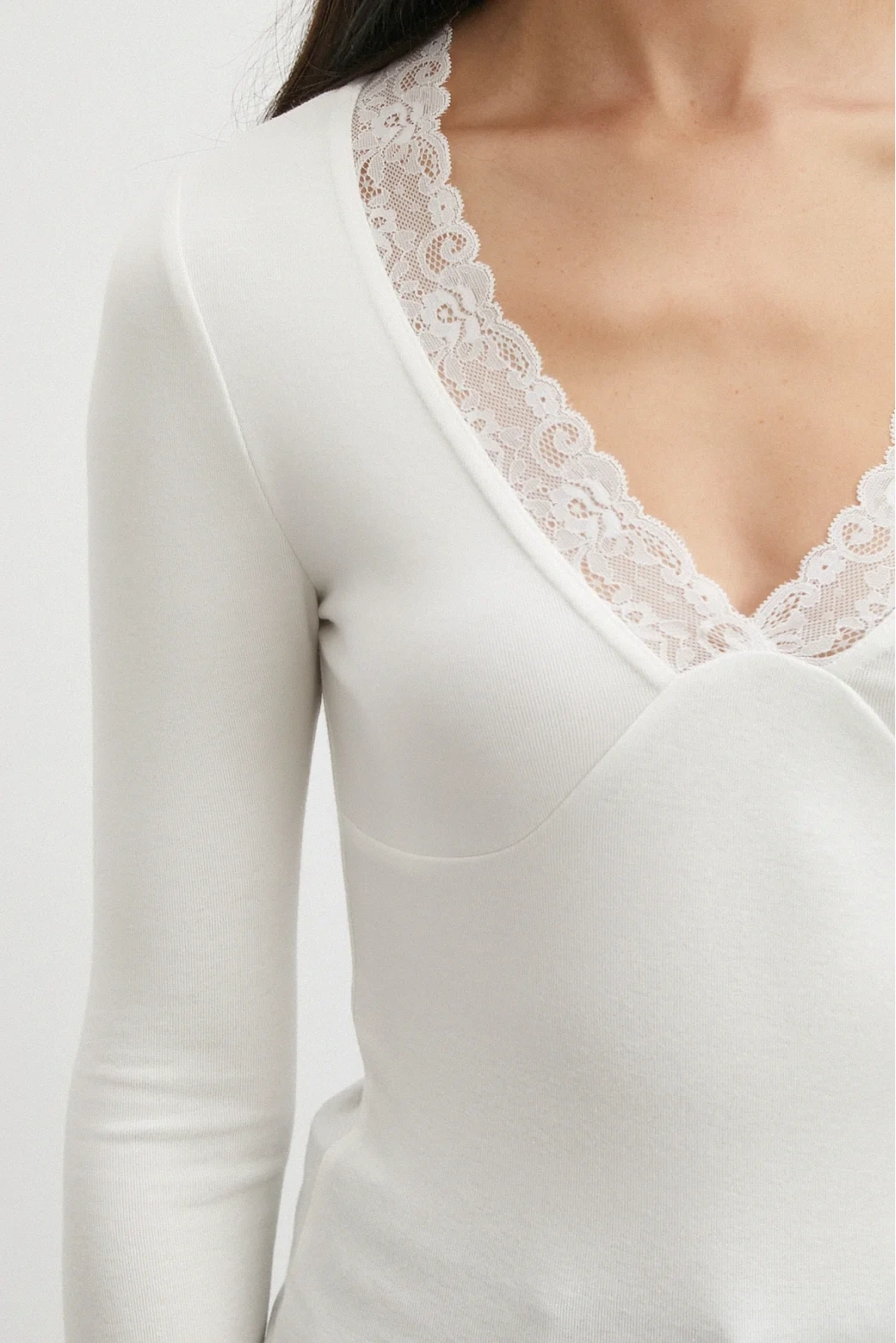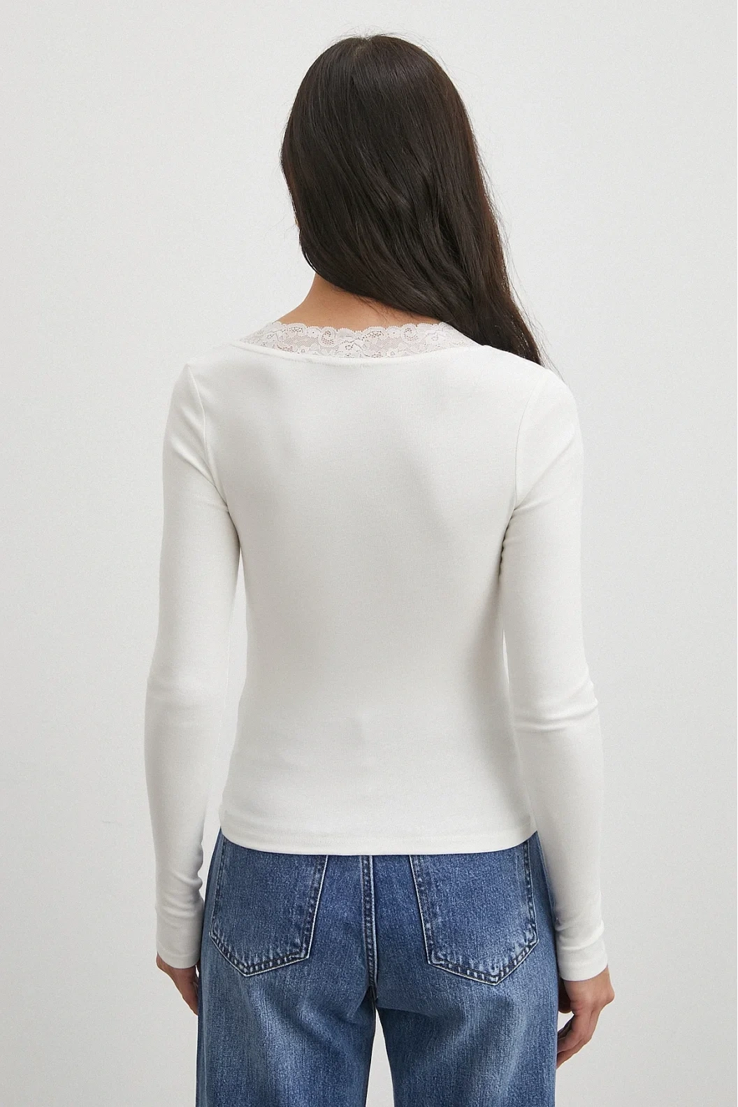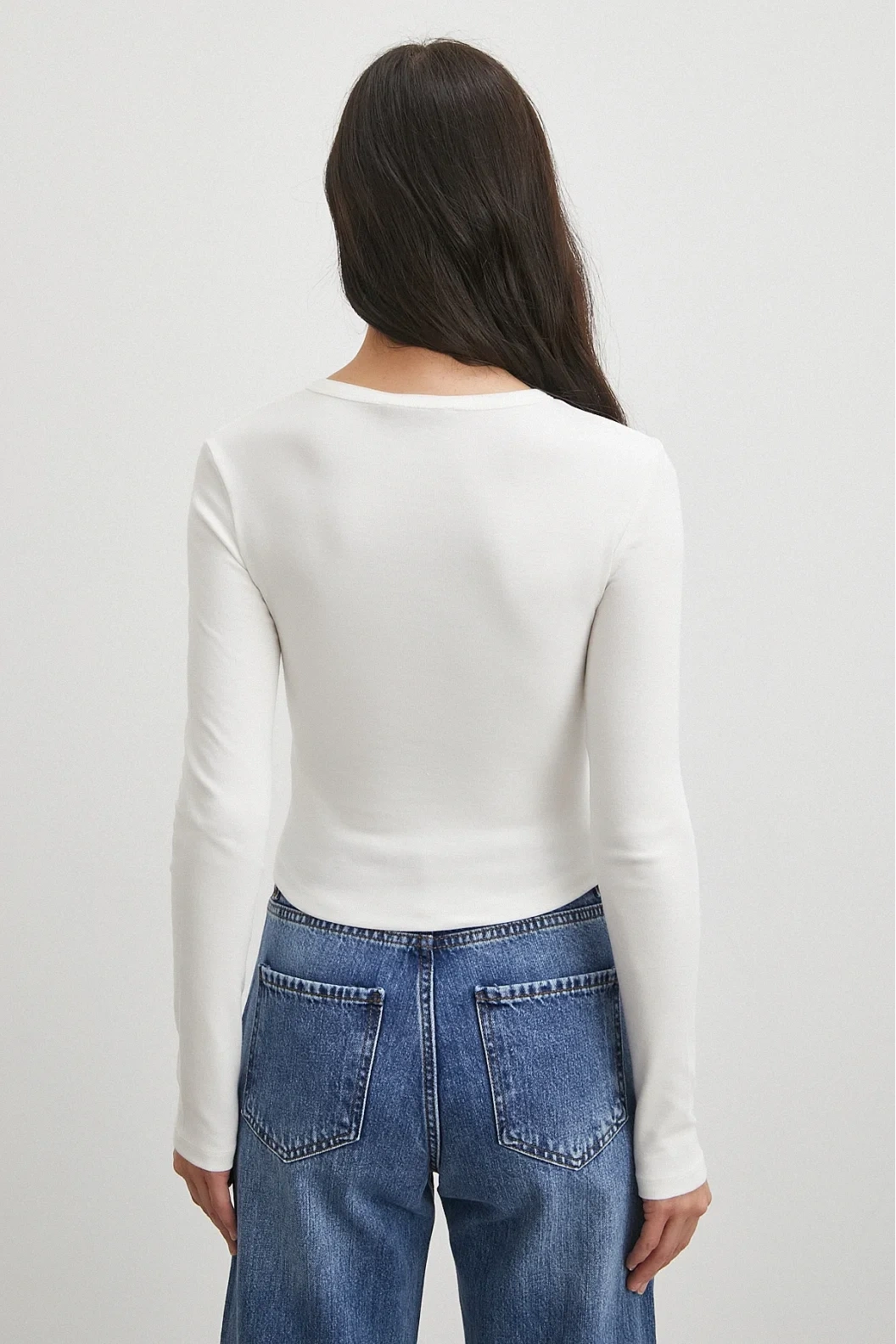 Kolu Yırtmaçlı Balıkçı Yaka T-shırt Beyaz