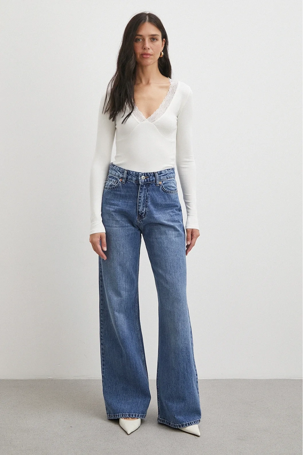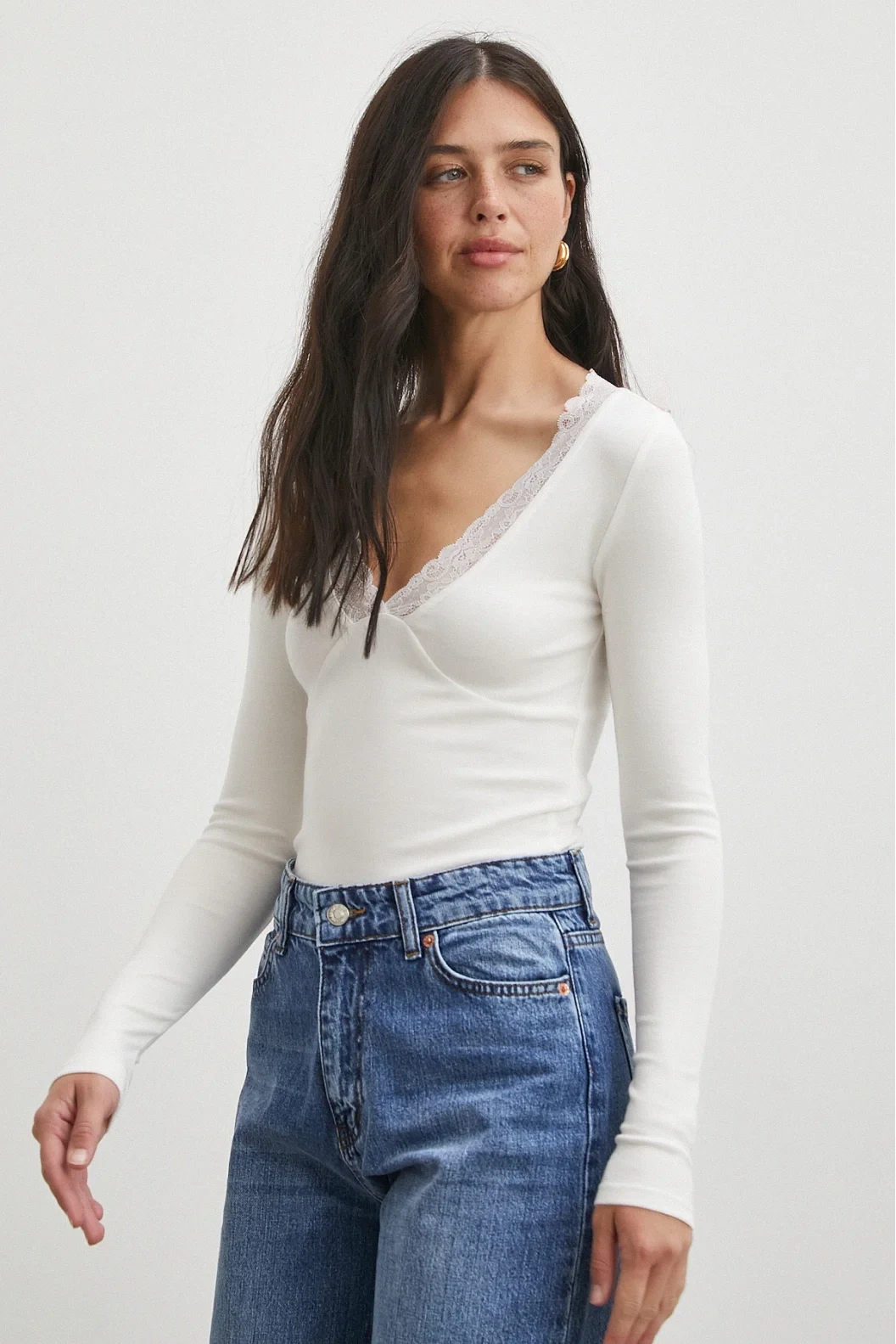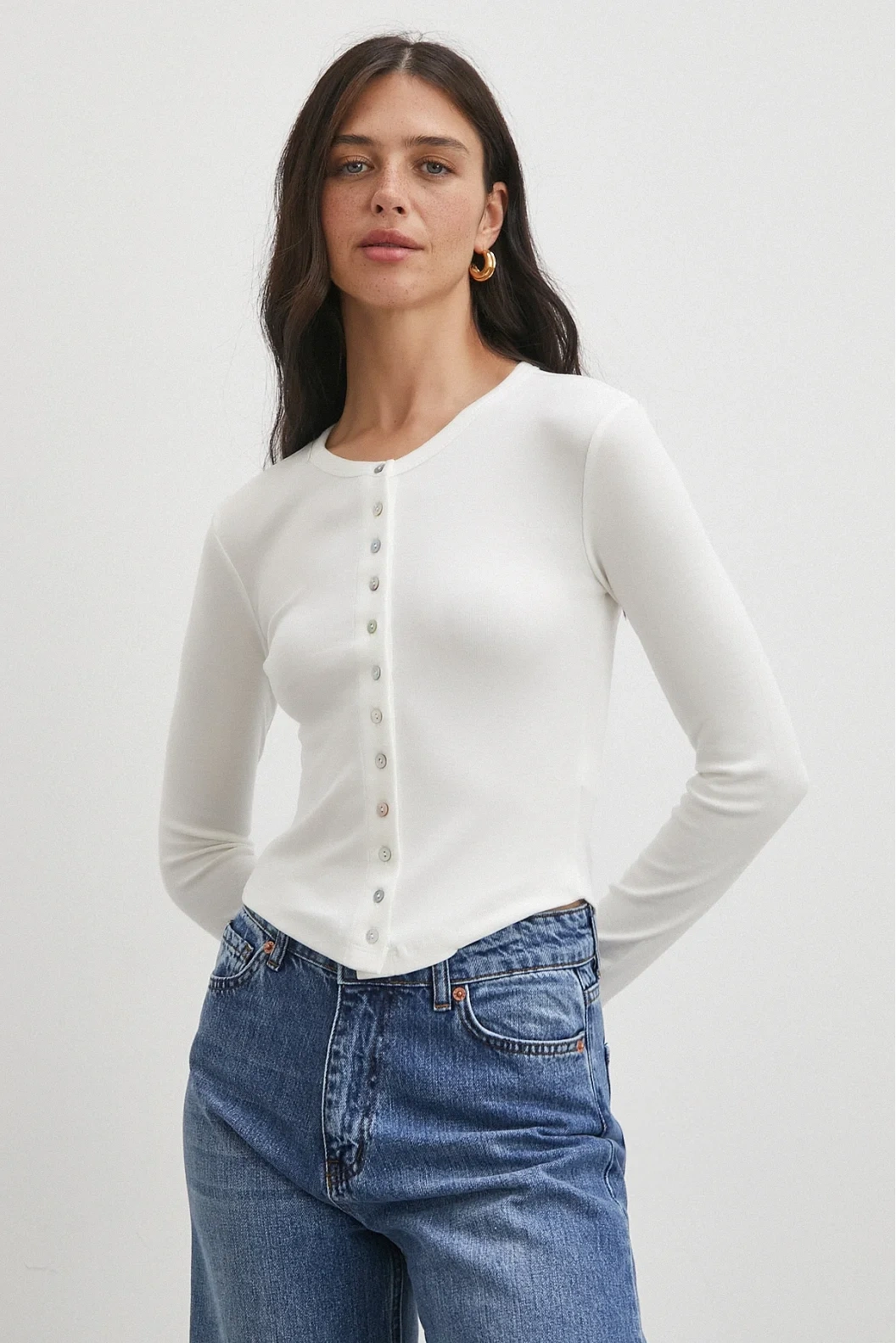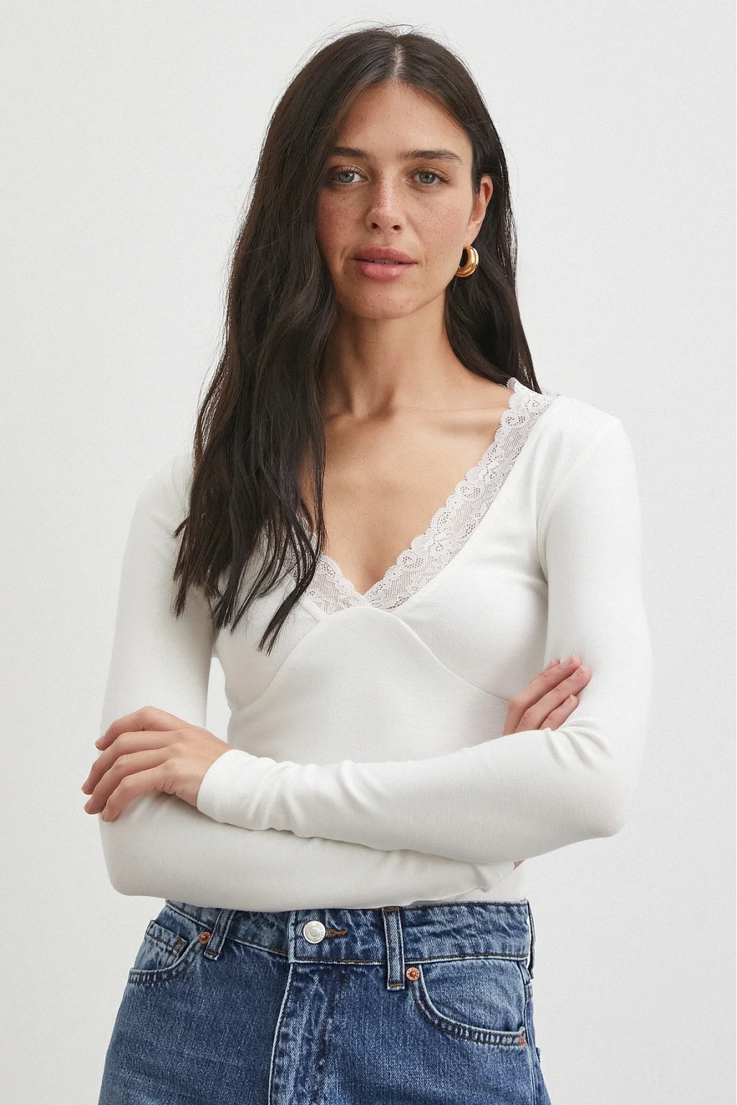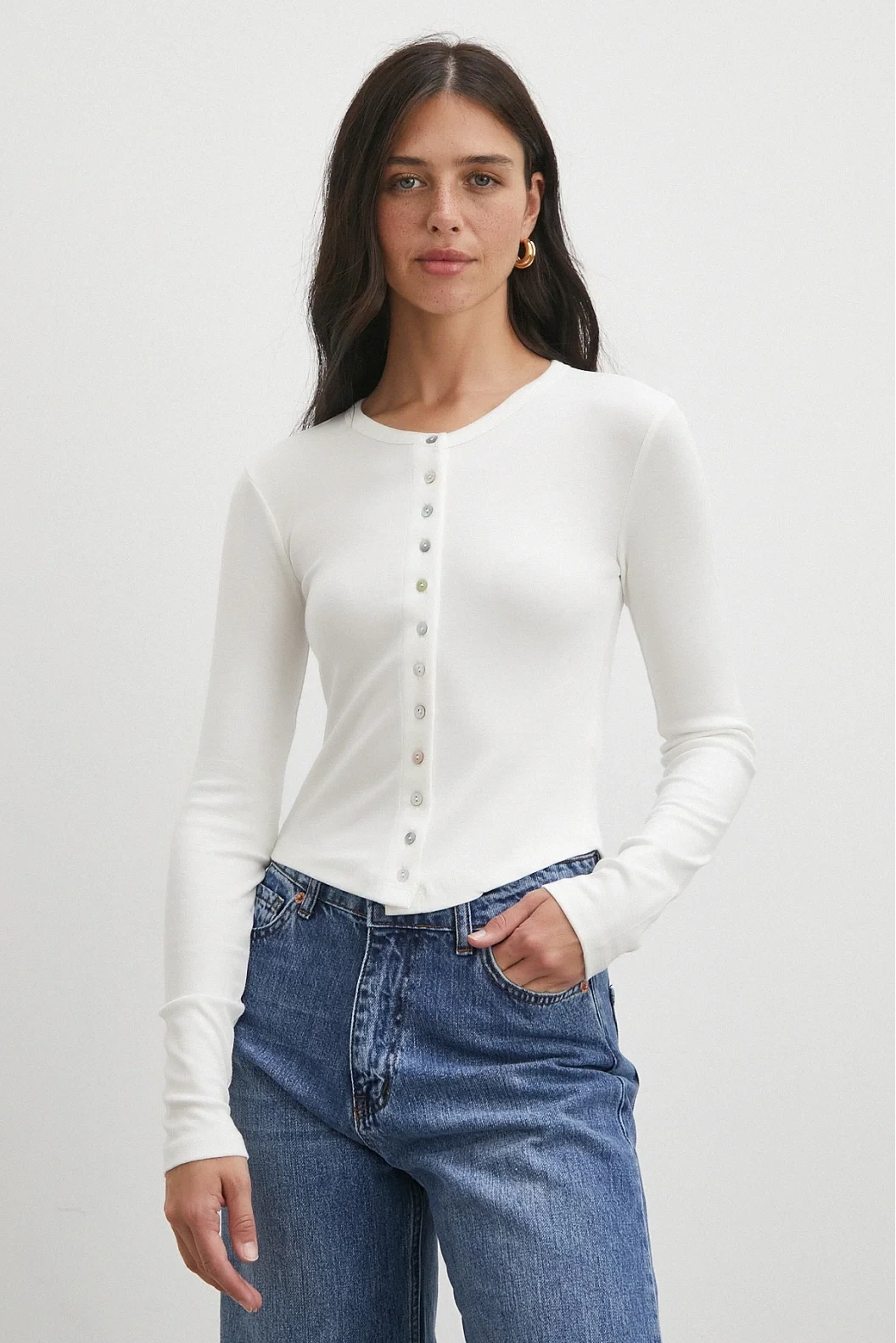 Kolu Yırtmaçlı Balıkçı Yaka T-shırt Beyaz