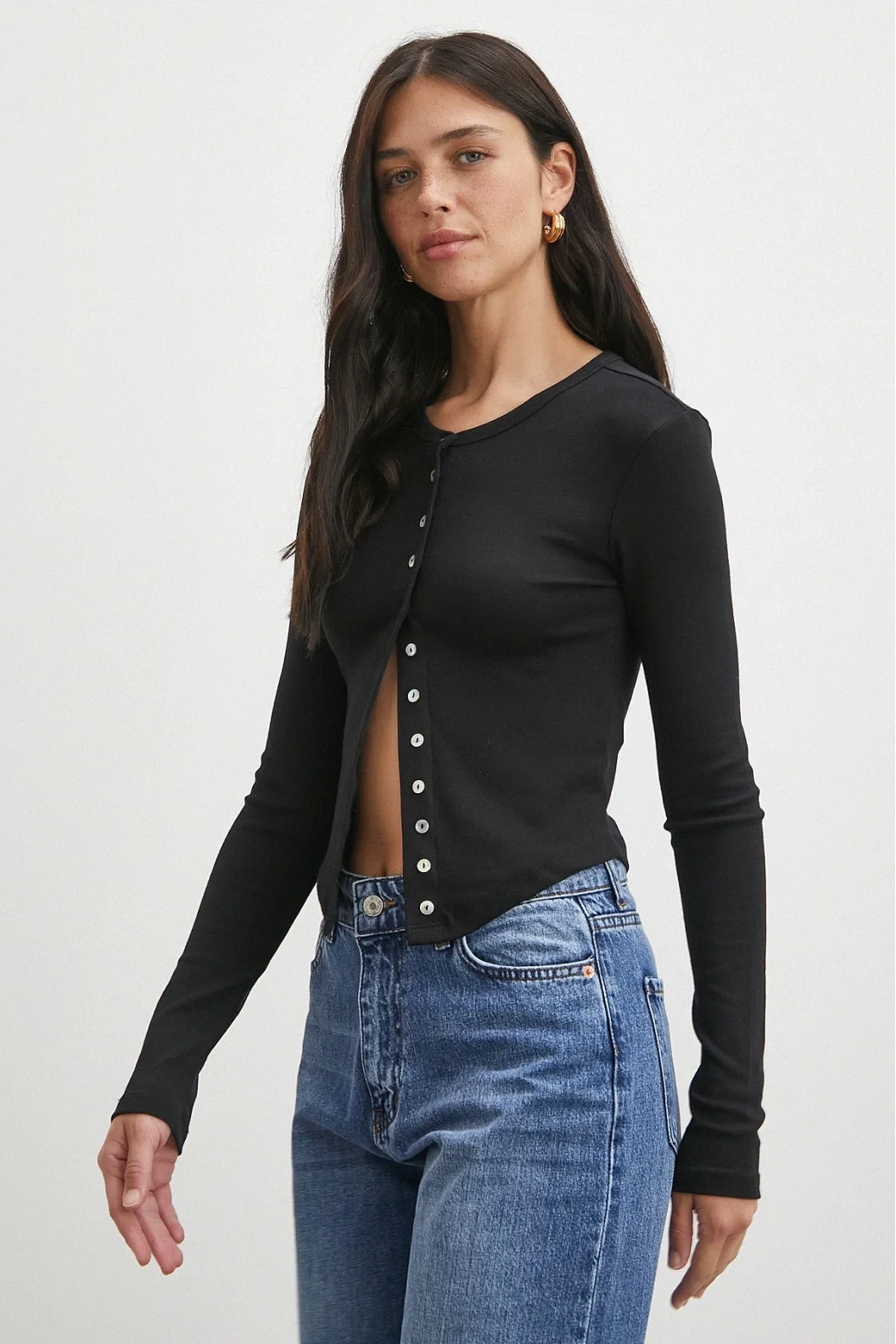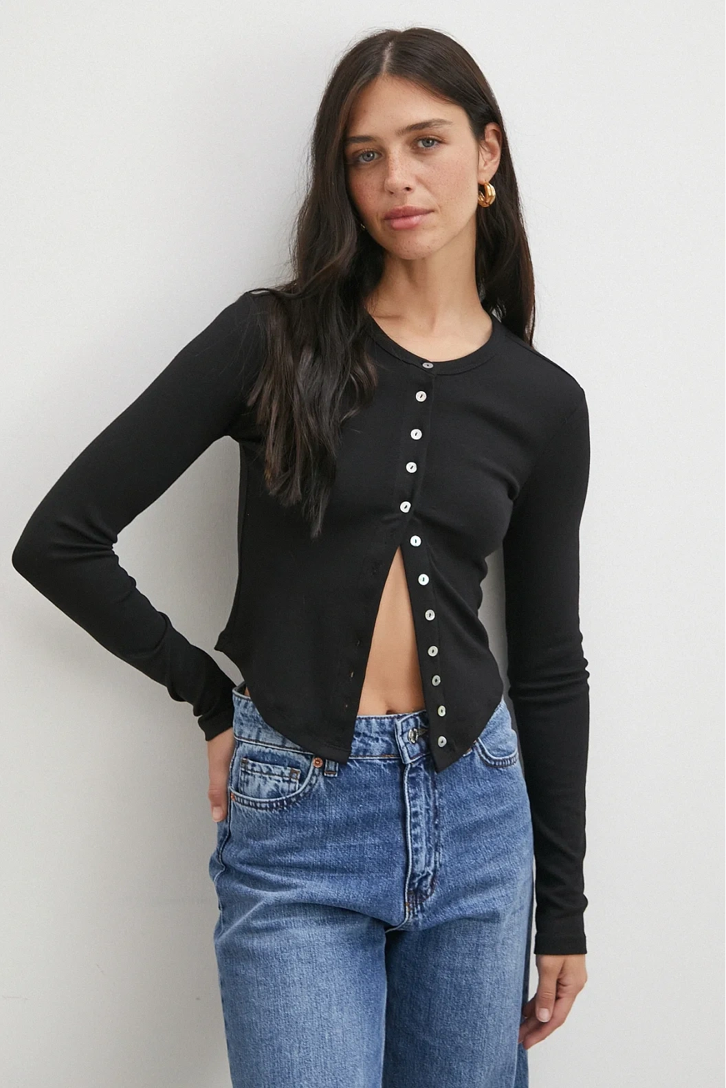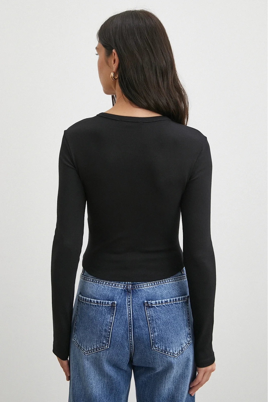 Kolu Yırtmaçlı Balıkçı Yaka T-shırt Siyah