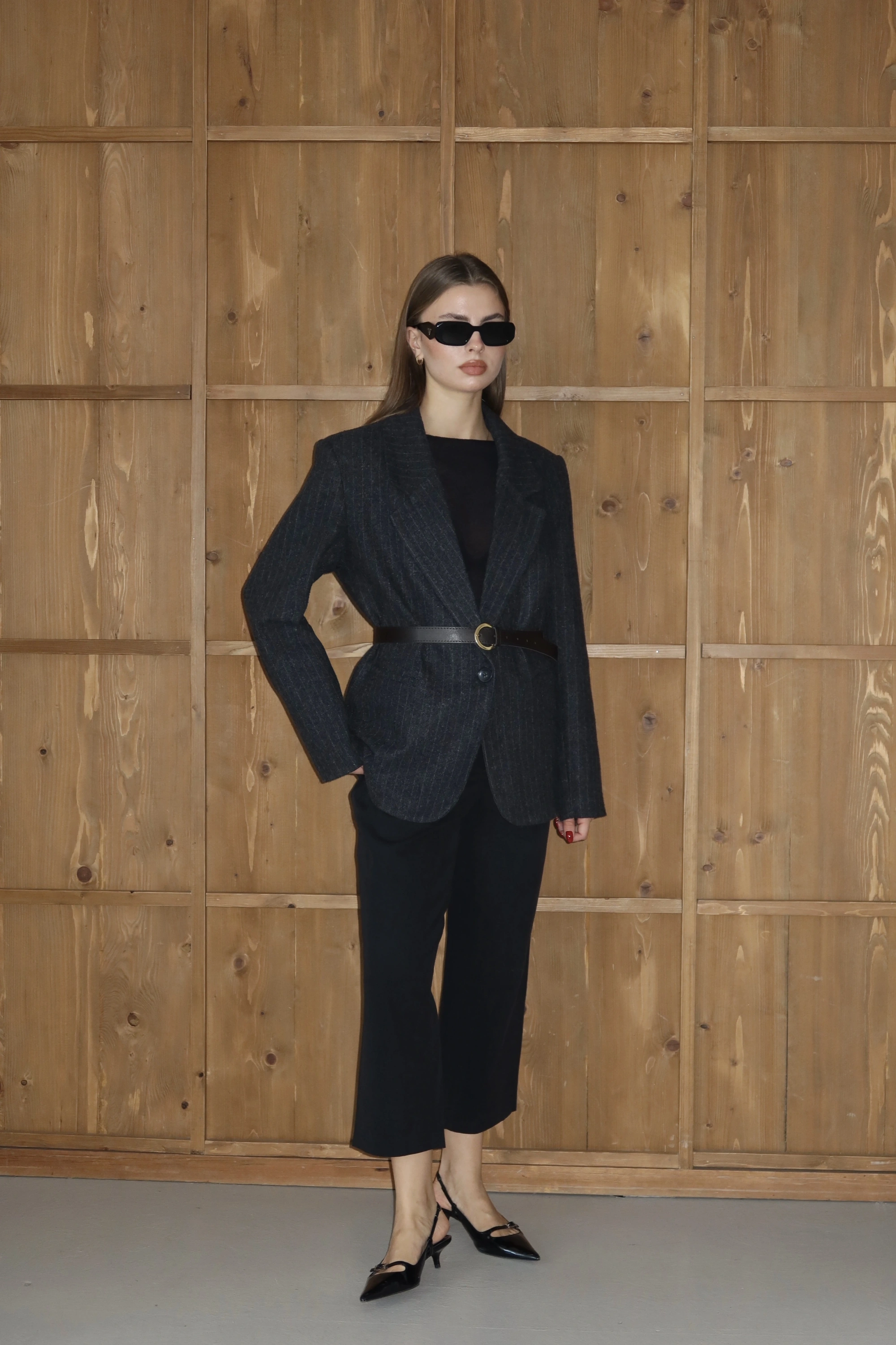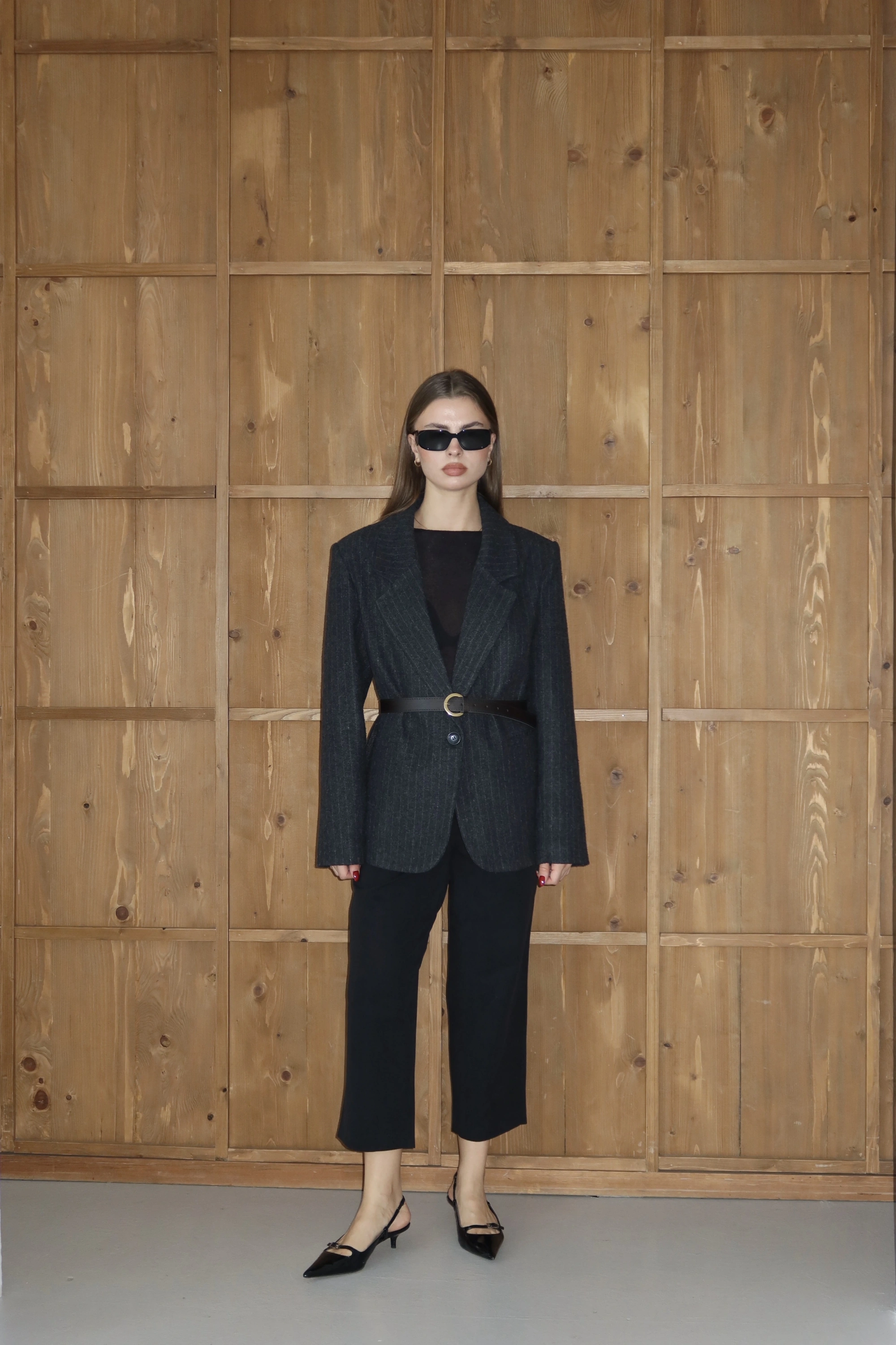 Tek Düğmeli Blazer Ceket Gri