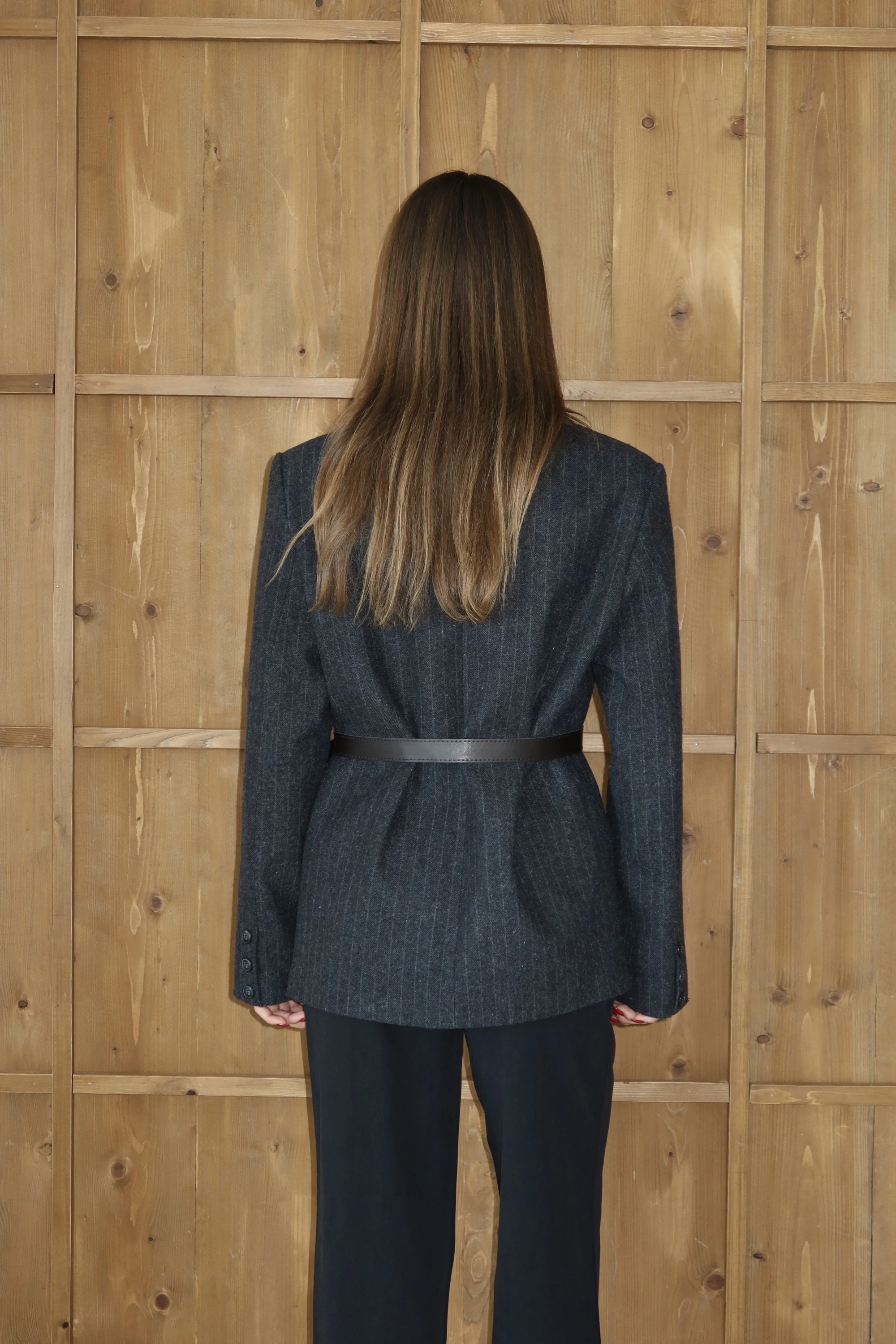 Çift Düğmeli Keten Blazer Ceket Gri
