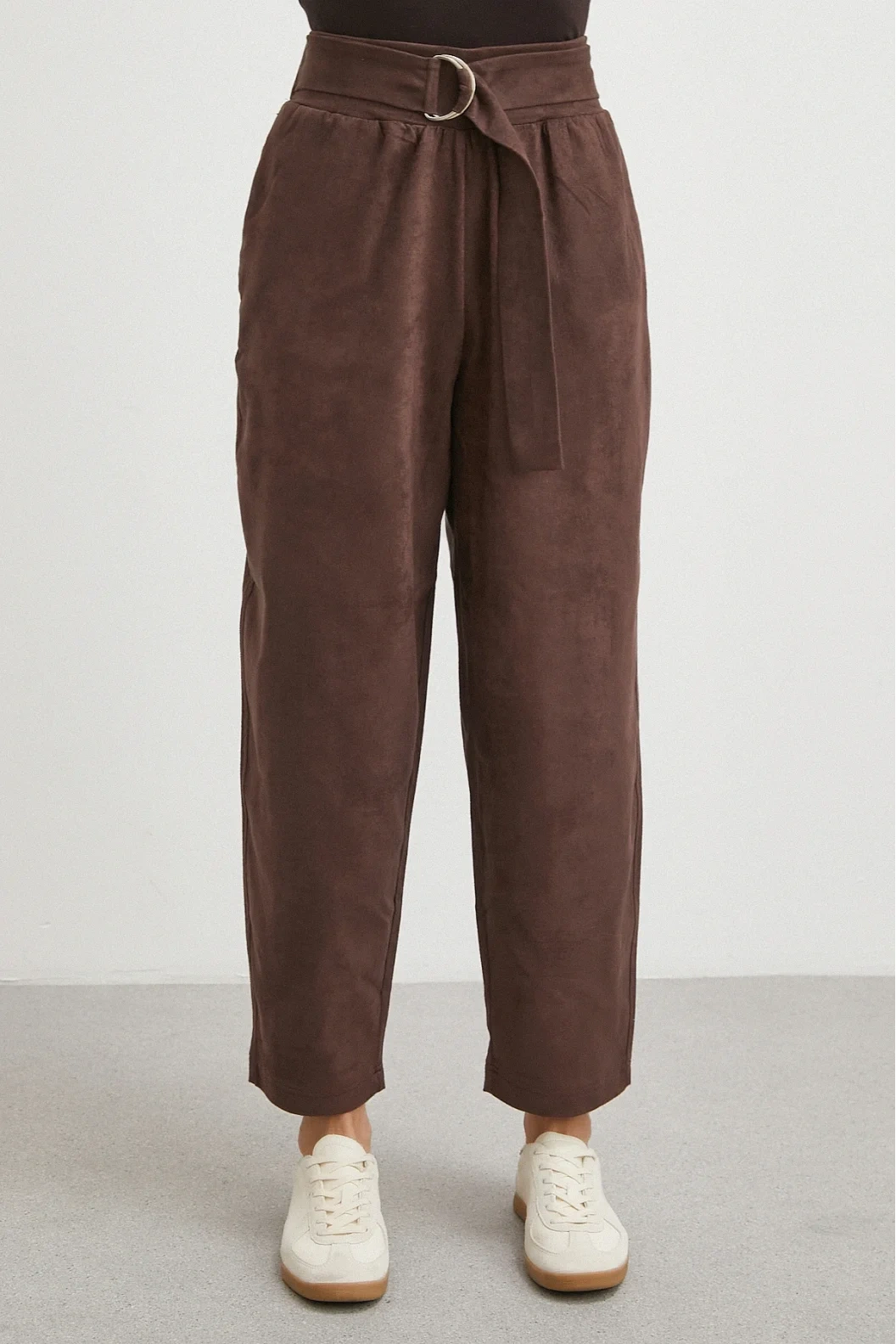 Beli Büzgülü Kemer Tokalı Pantolon Kahve