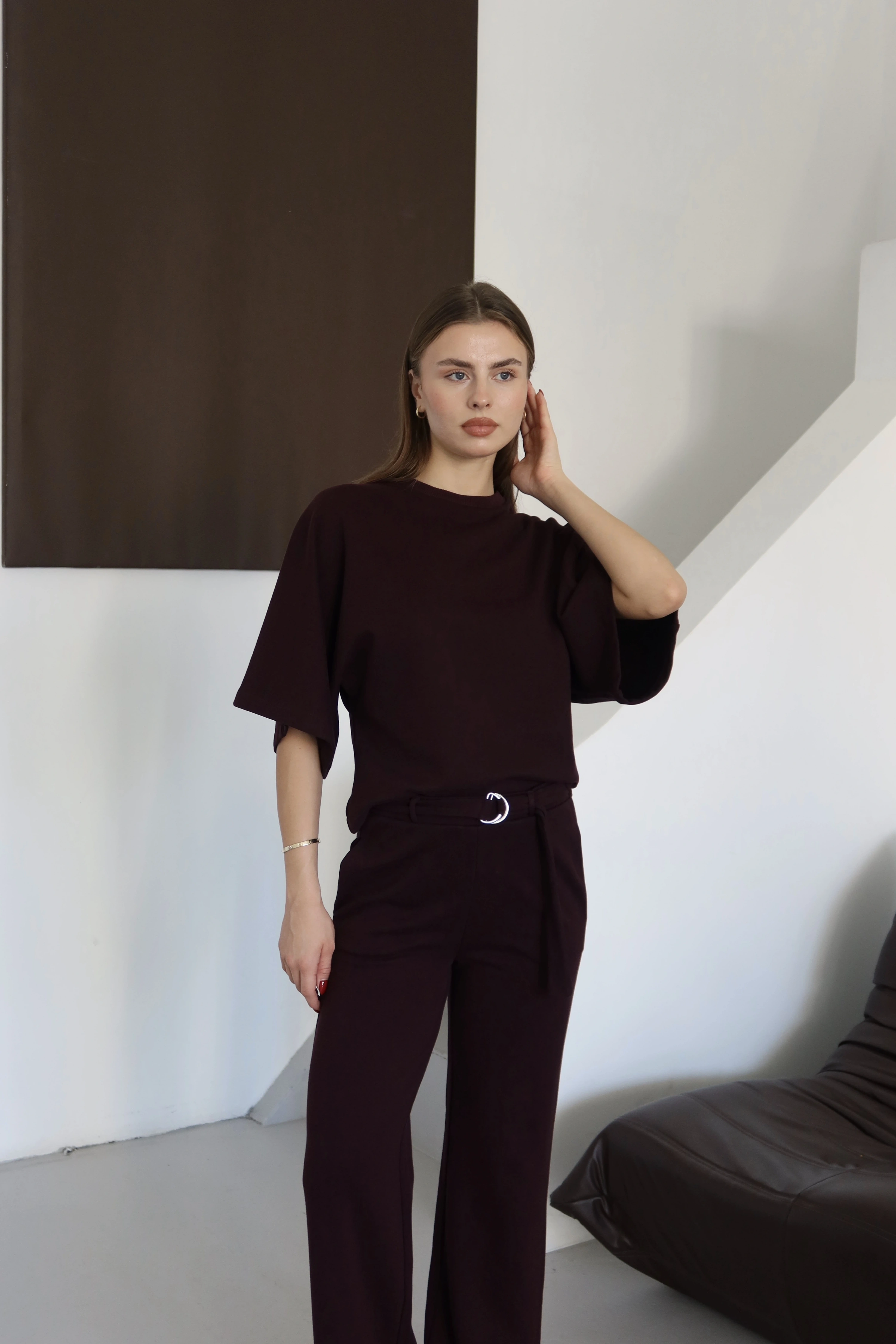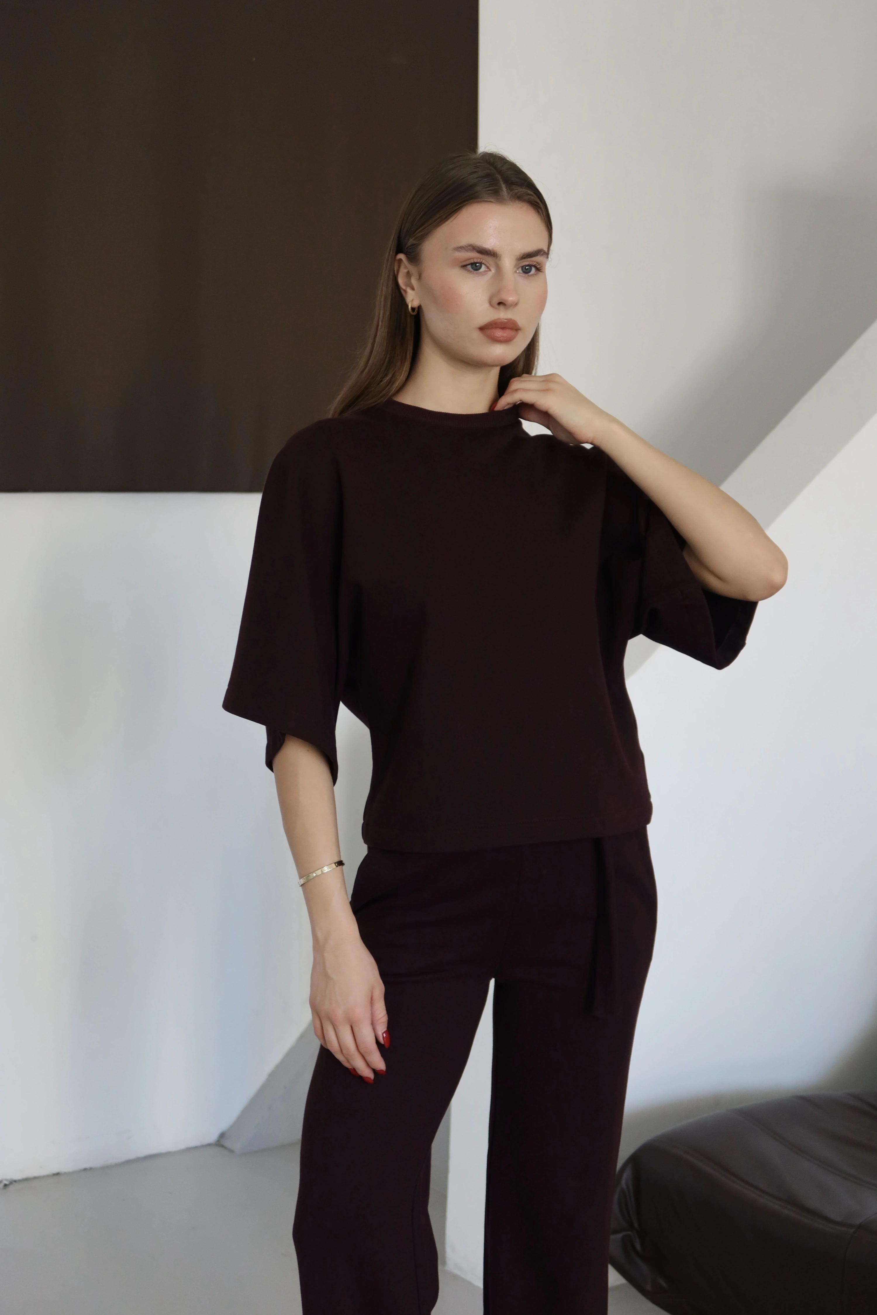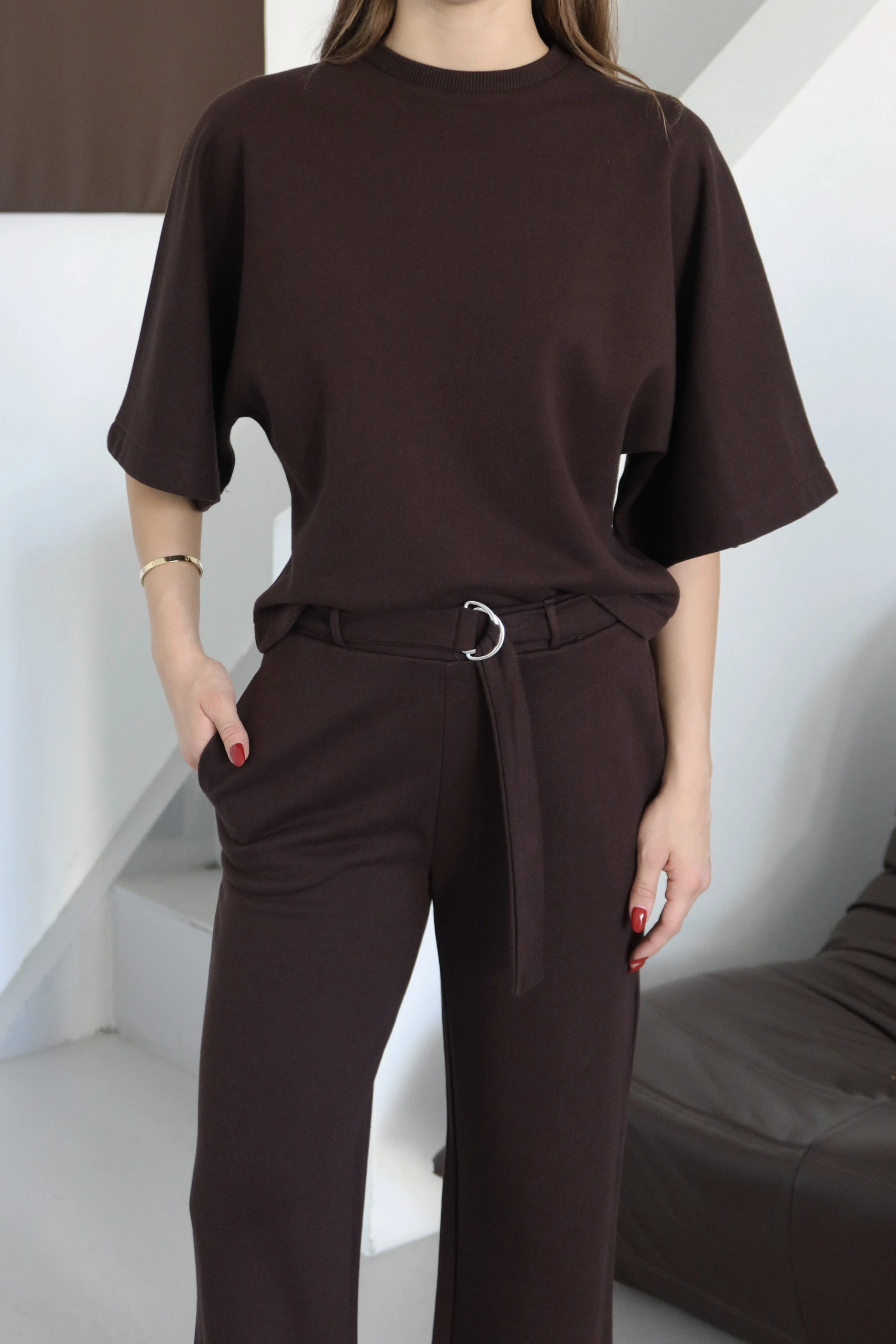 3 İplik Kısa Kol Takım Kahve