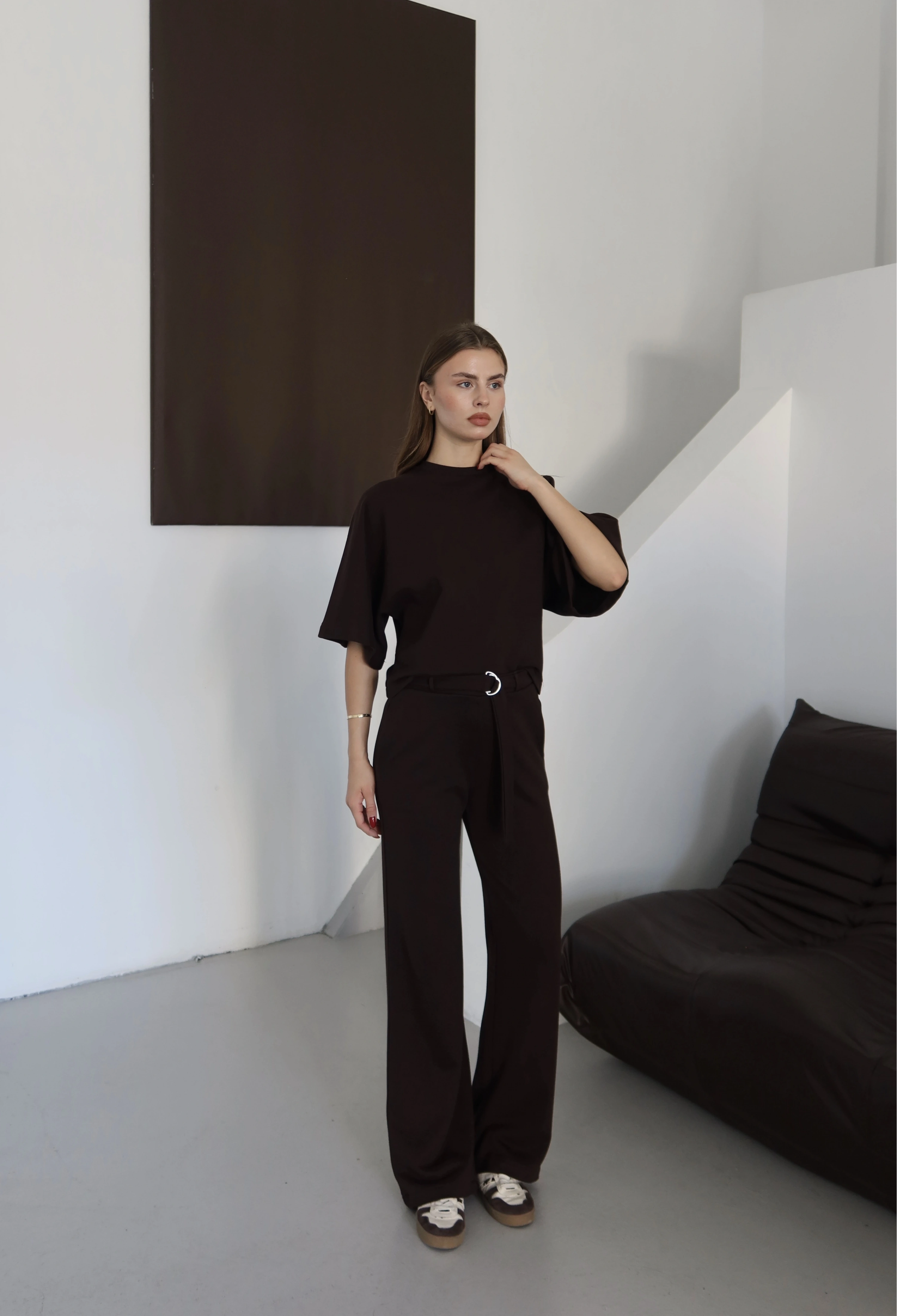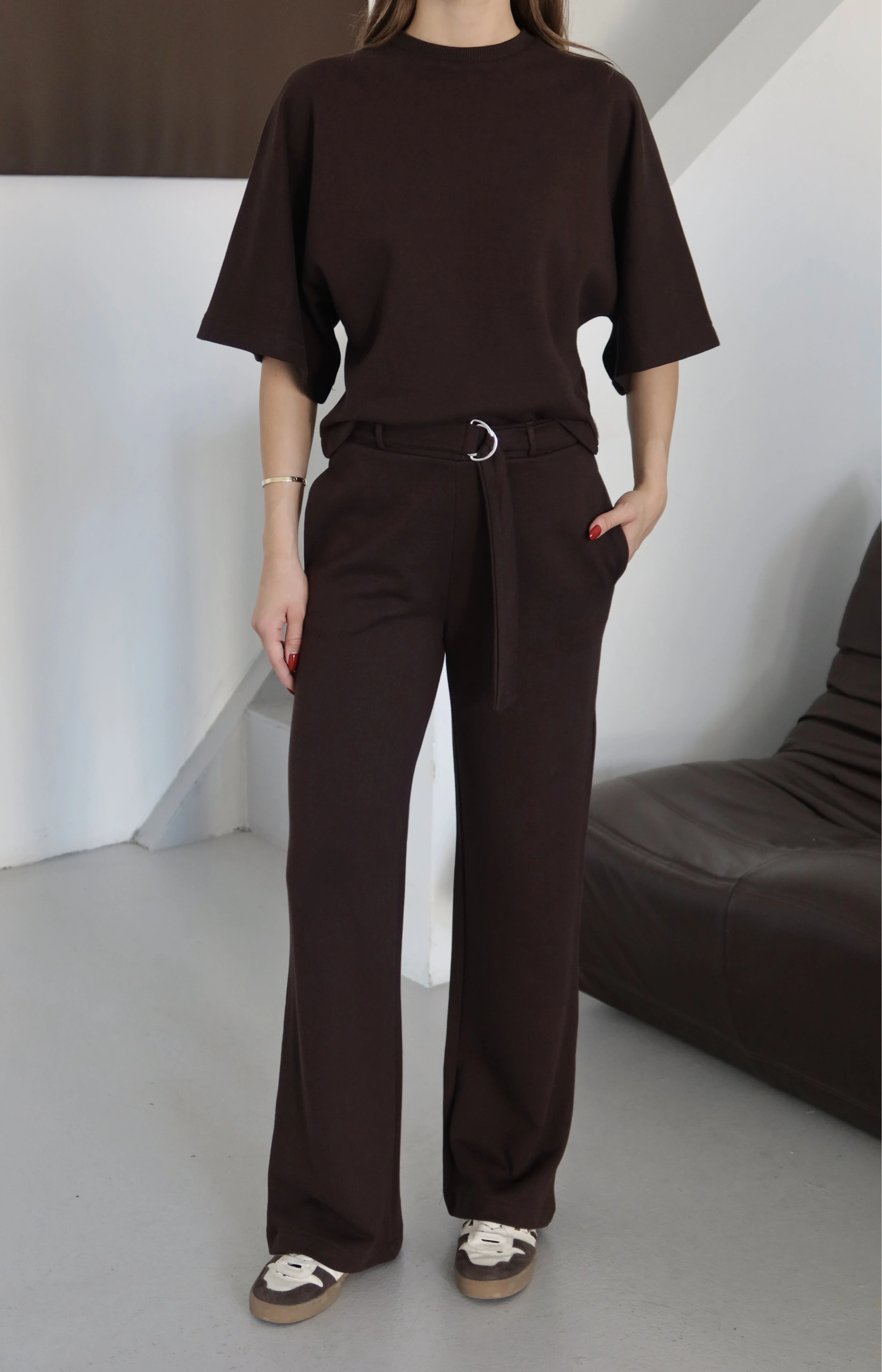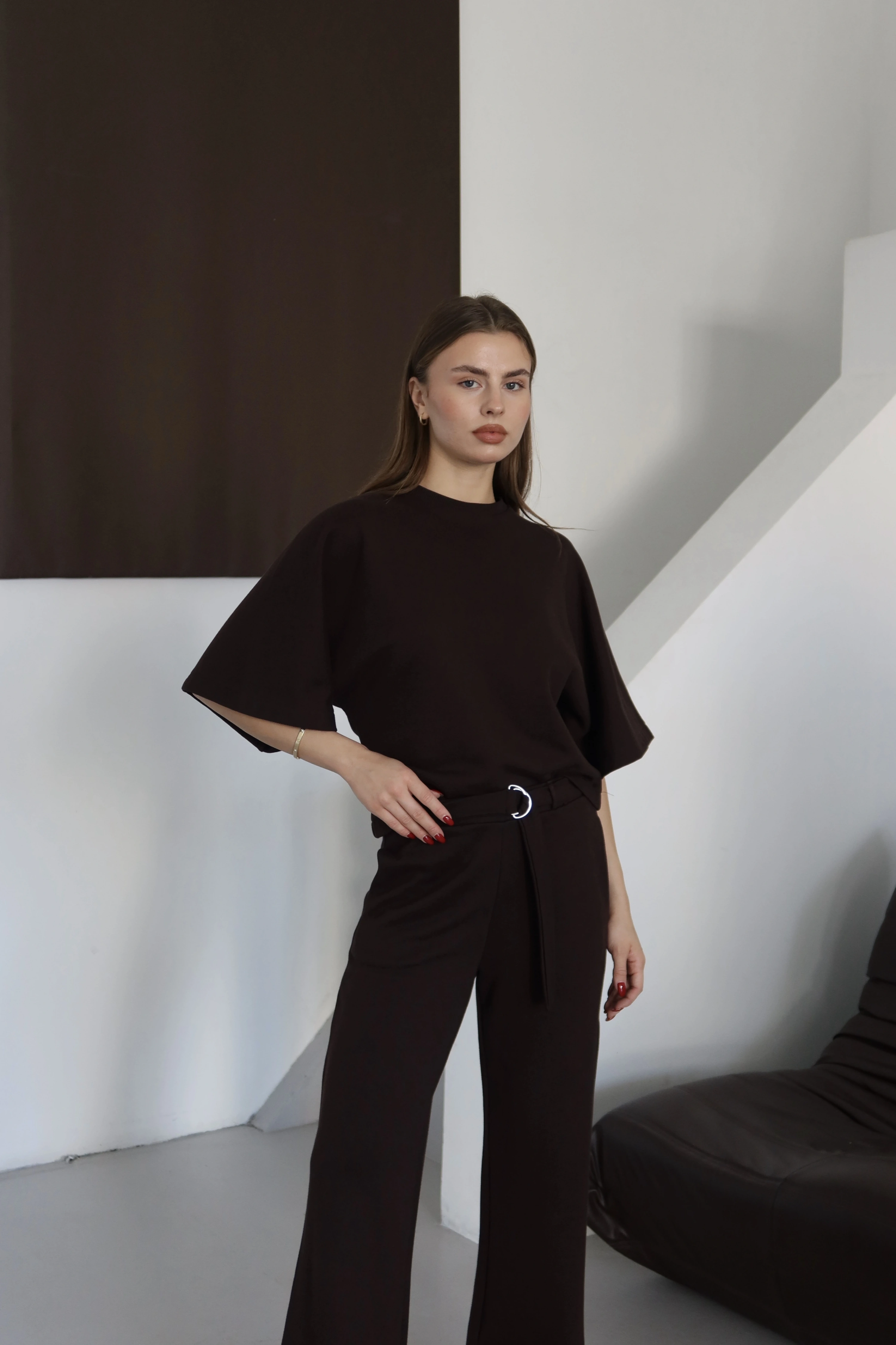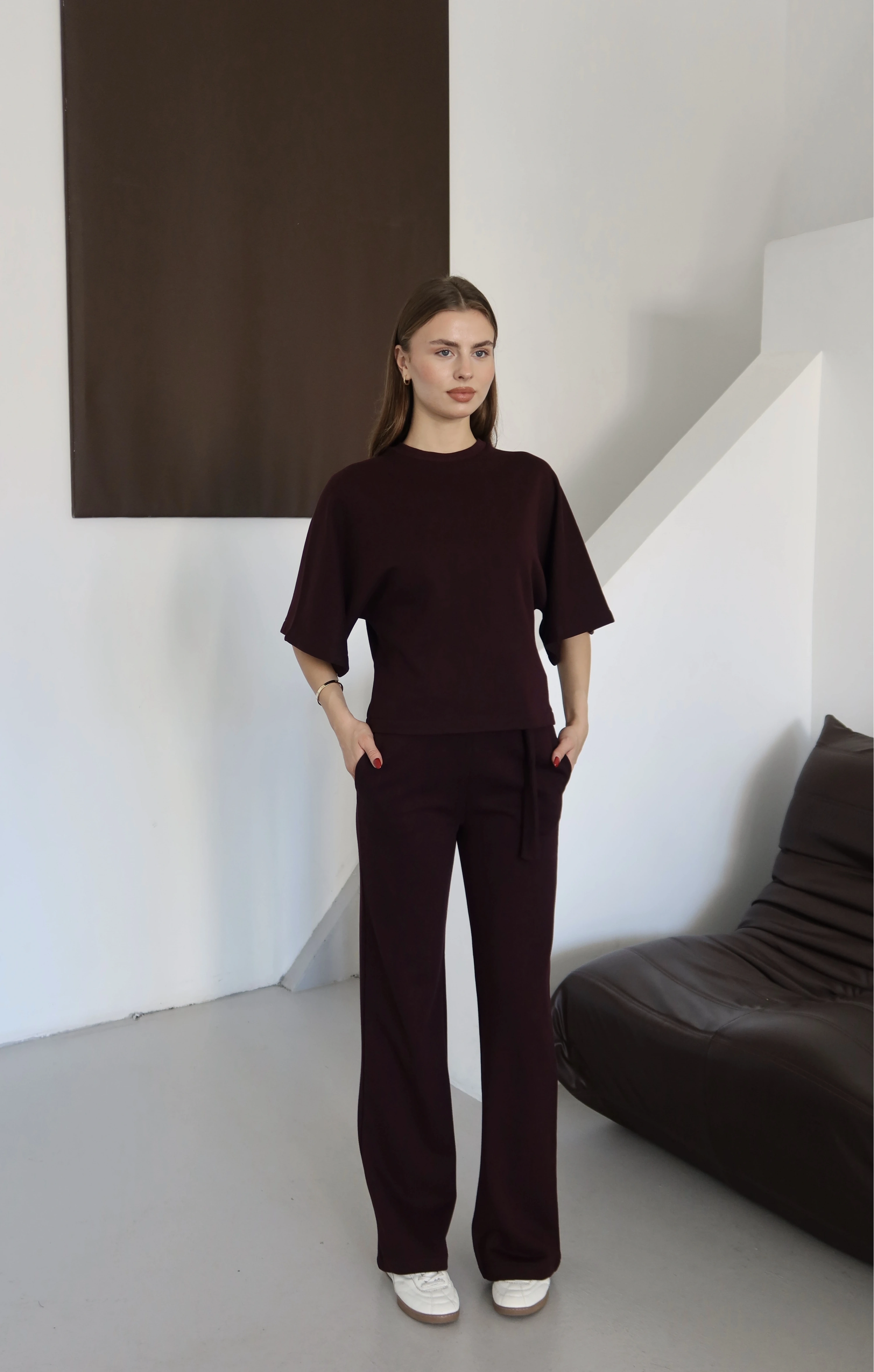 3 İplik Kısa Kol Takım Kahve