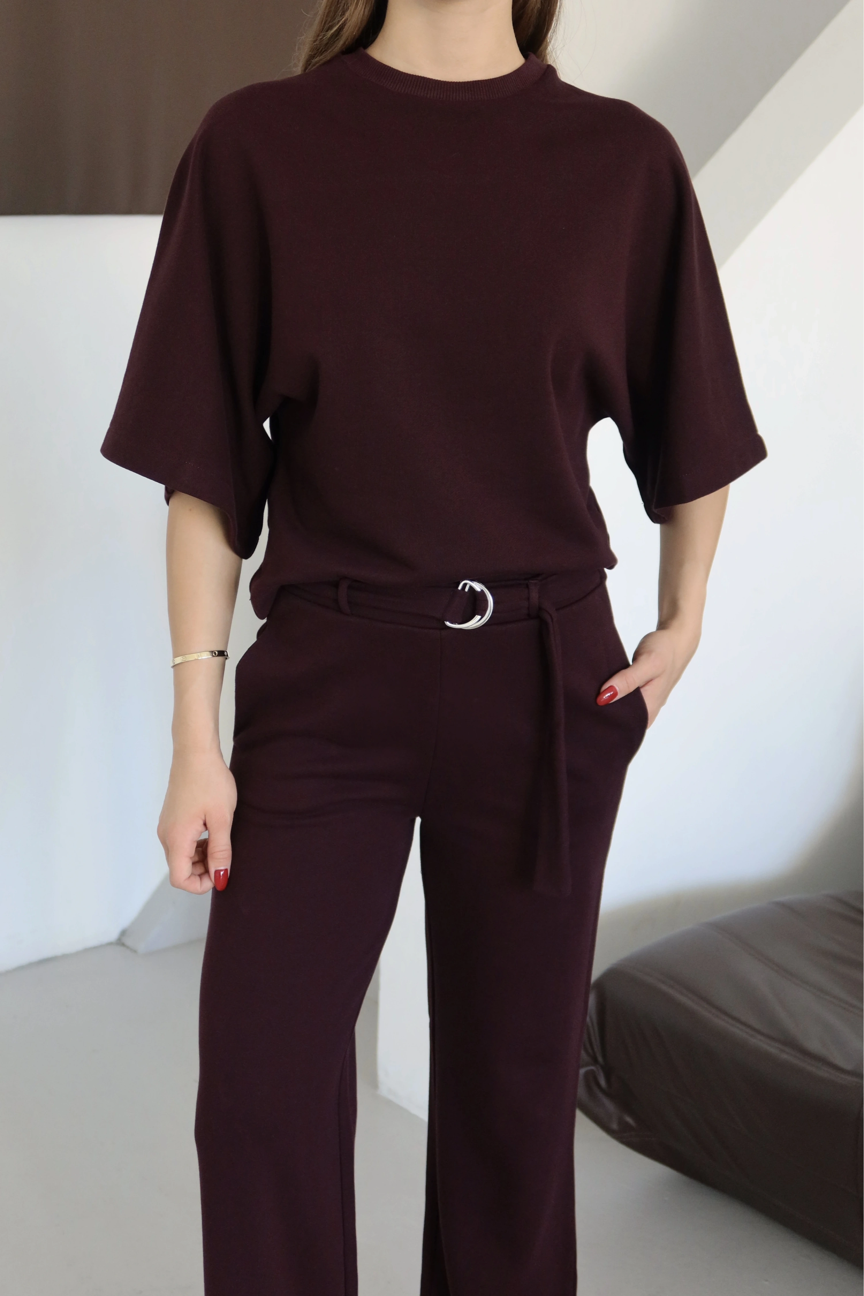 3 İplik Kısa Kol Takım Bordo