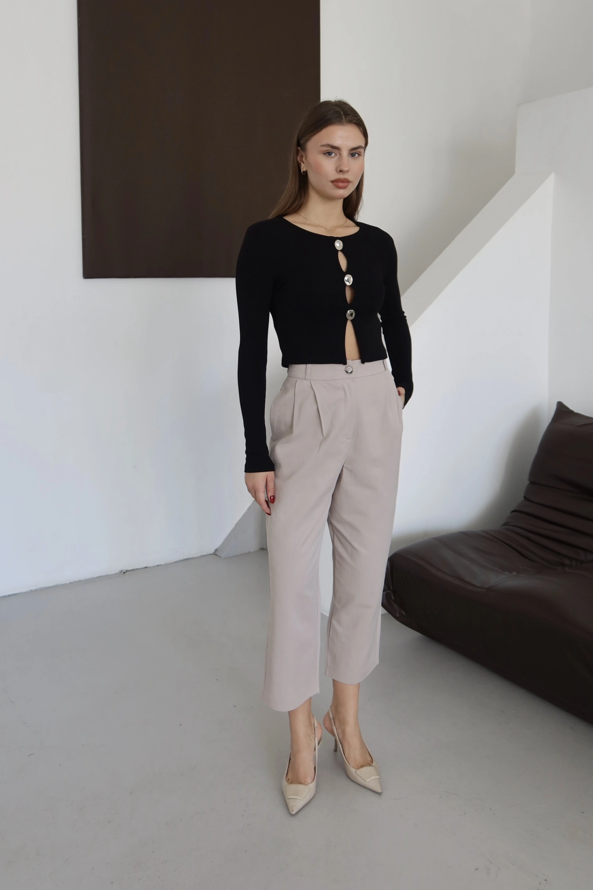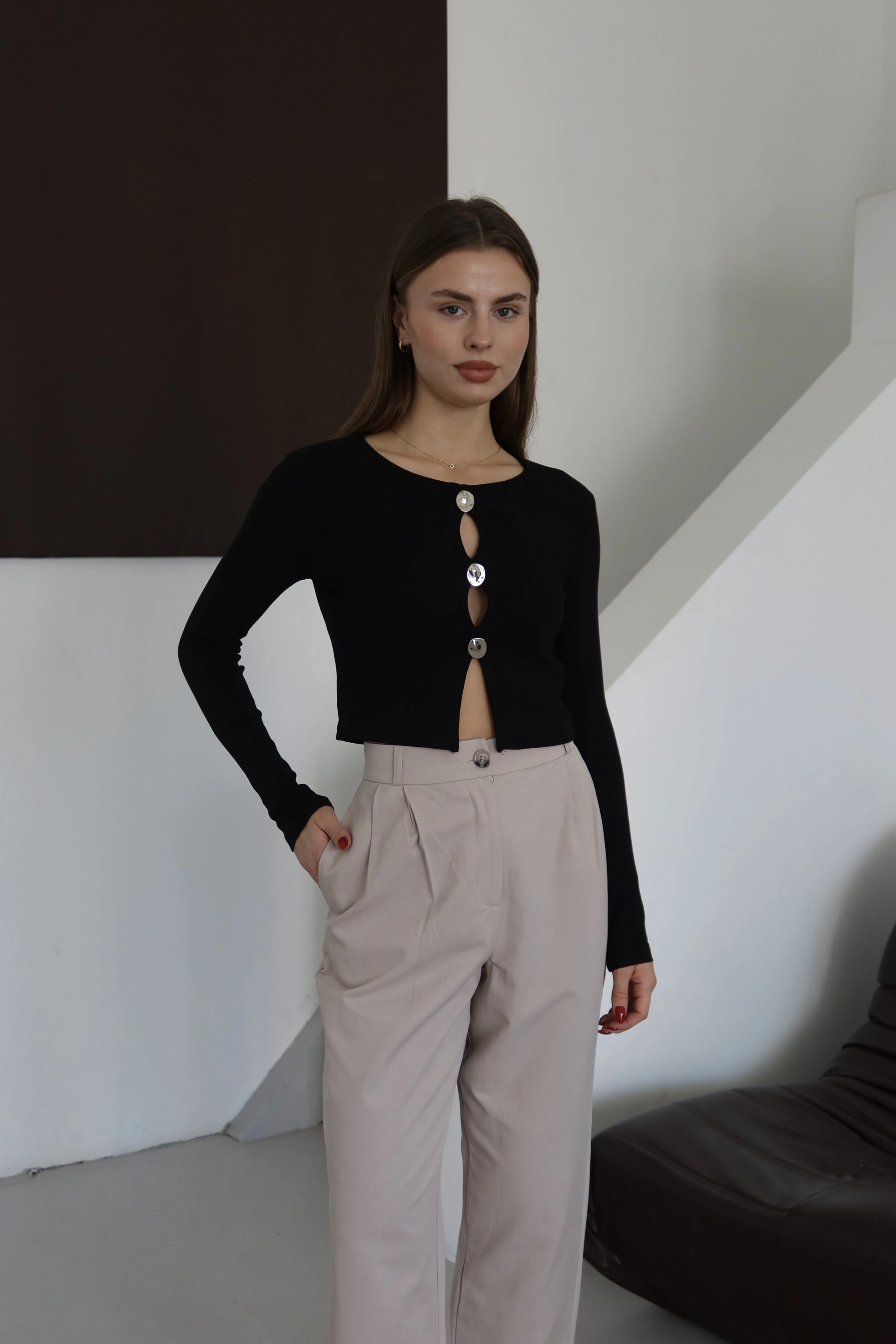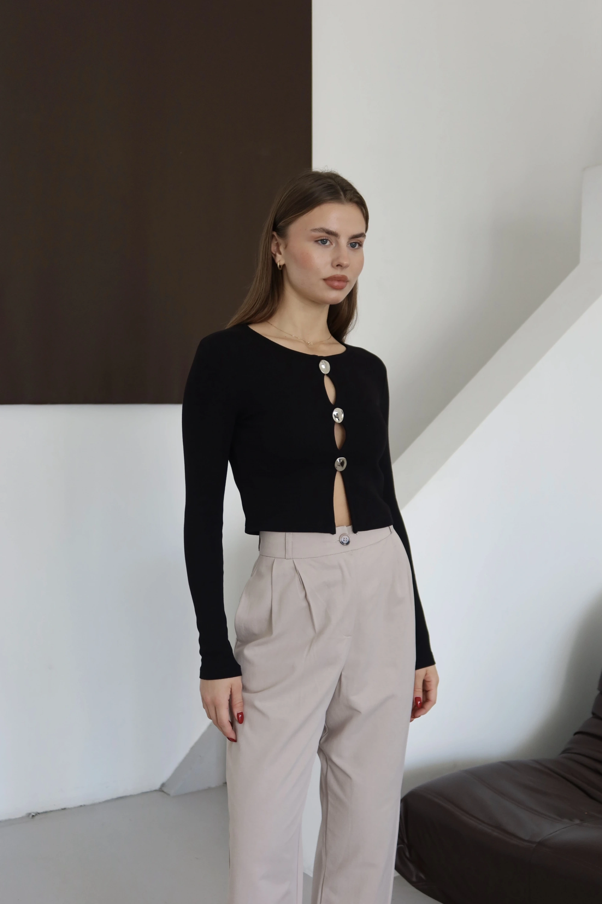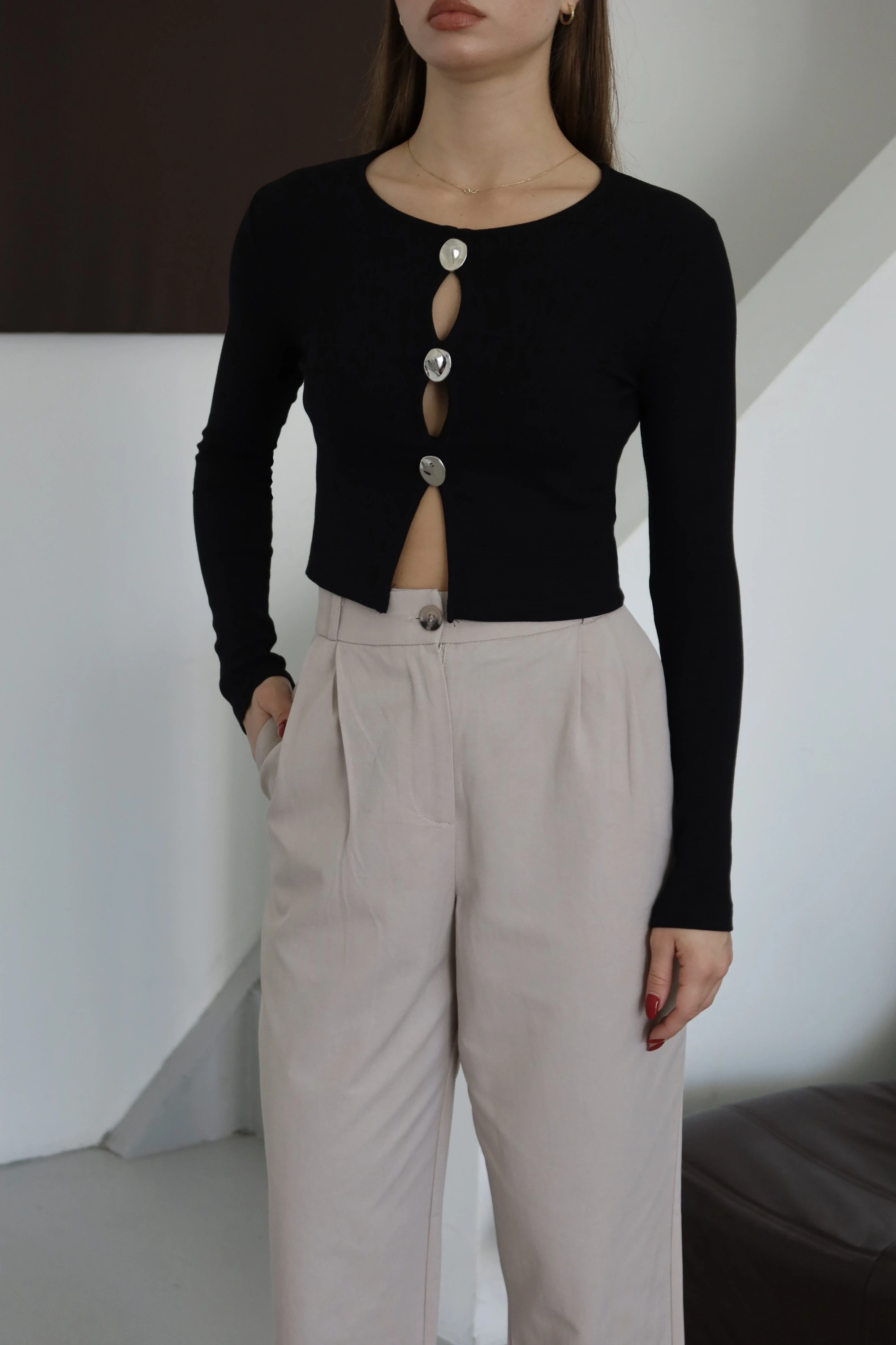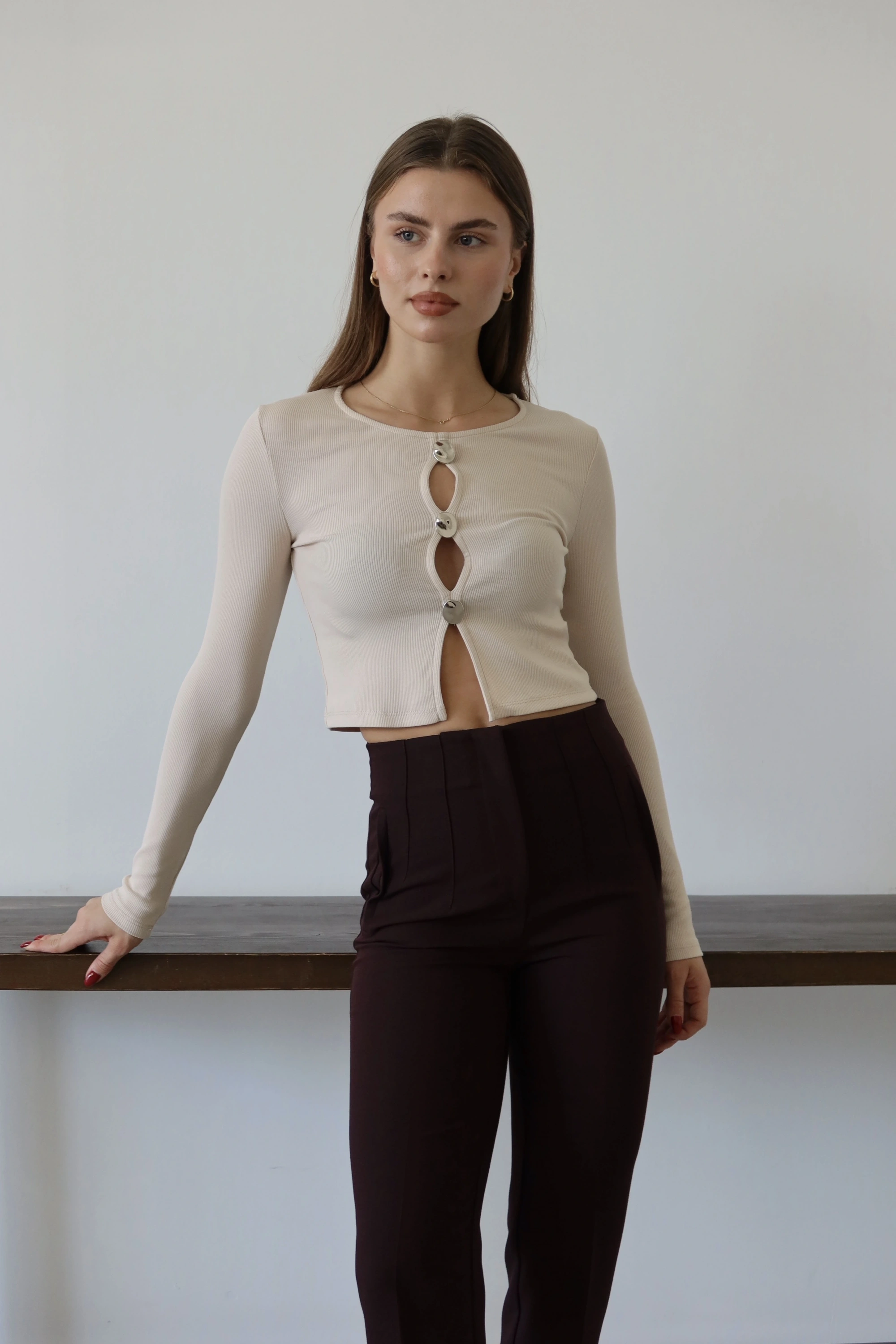 Düğmeli Bluz Bej