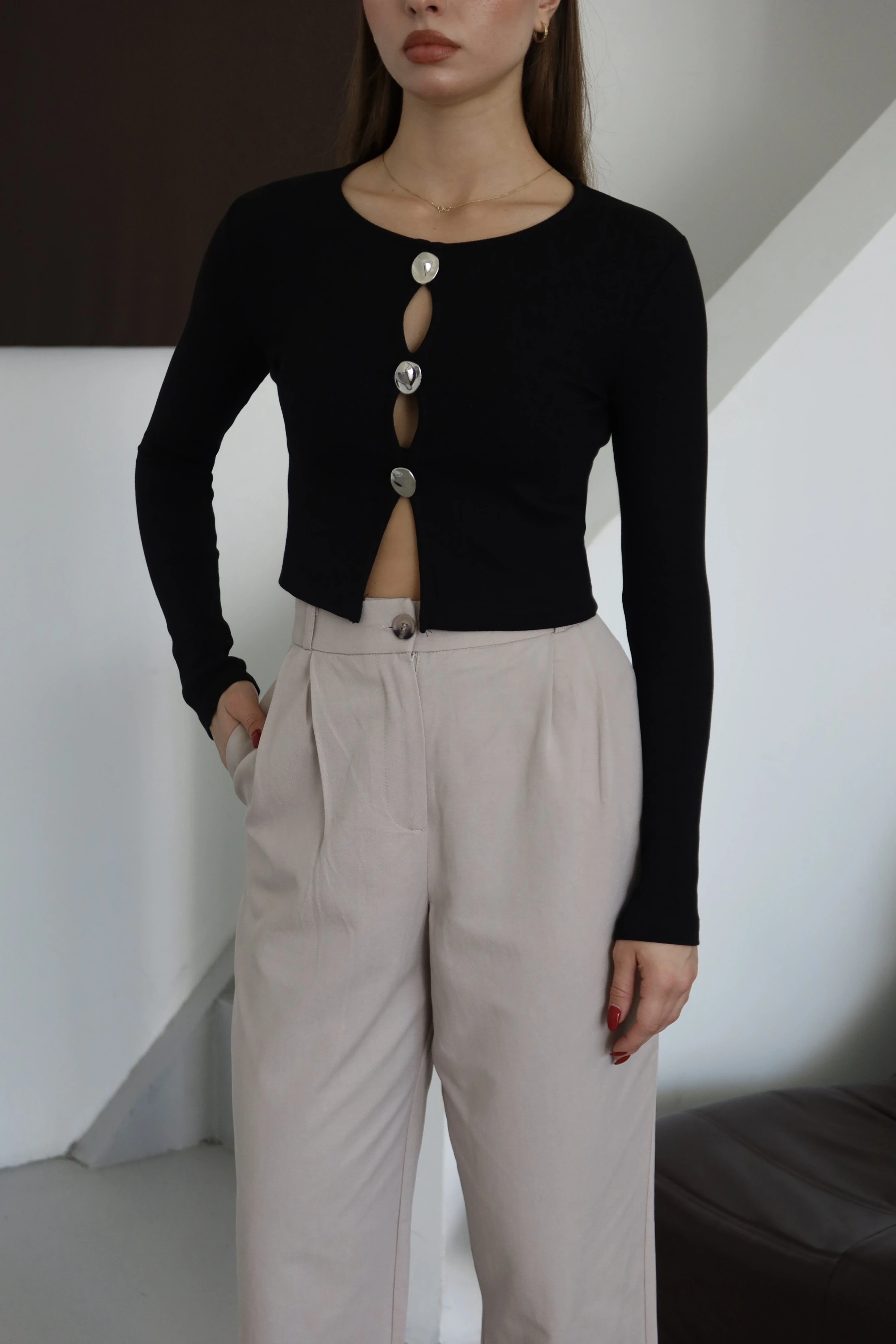Düğmeli Bluz Siyah