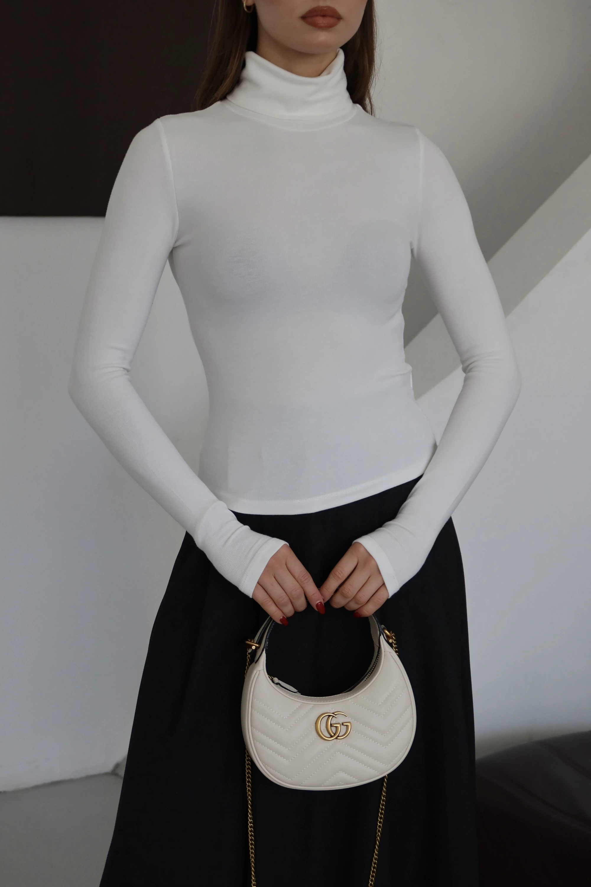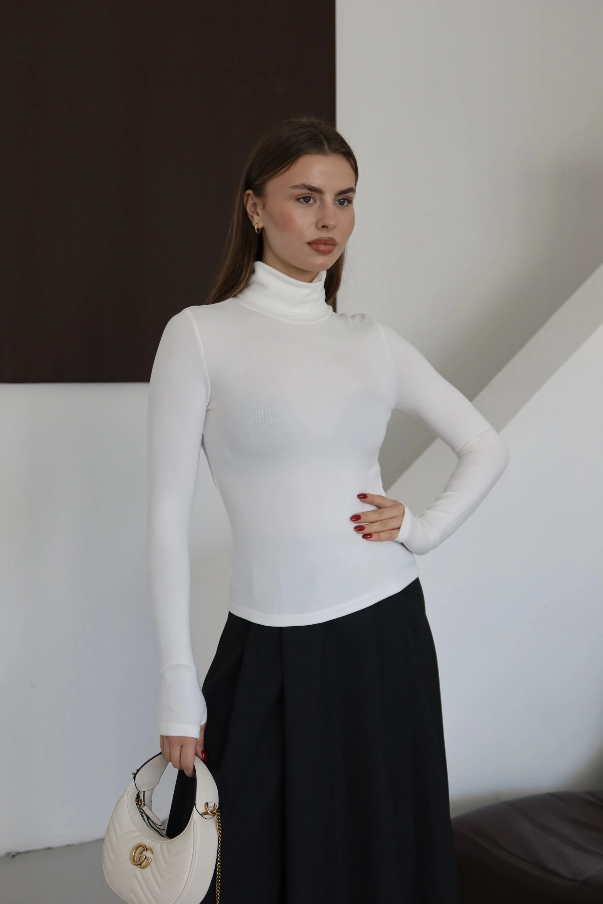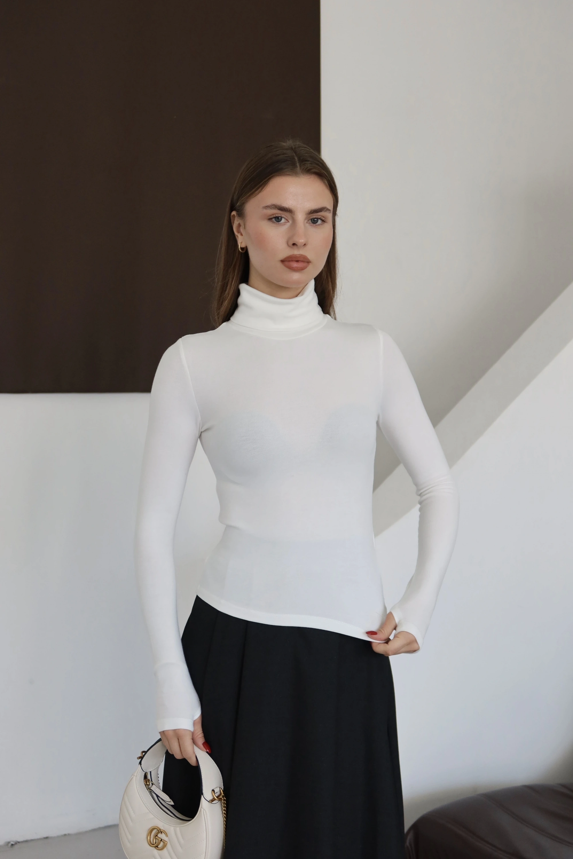 Kolu Yırtmaçlı Balıkçı Yaka T-shırt Beyaz